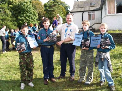 The Black's of Greenock Campsie Challenge saw 9 teams compete over the two days and was won by the 4th/6th Stirling (main picture below) who were presented with a Patrol Tent for their Troop courtesy of Black's and a 3 person cook kit, courtesy of Vango. Runners up were the 107th Pentland (below left) who each received a Vango sleeping bag and in third place the 5th Greenock (below right) who were presented with personal cook kits.